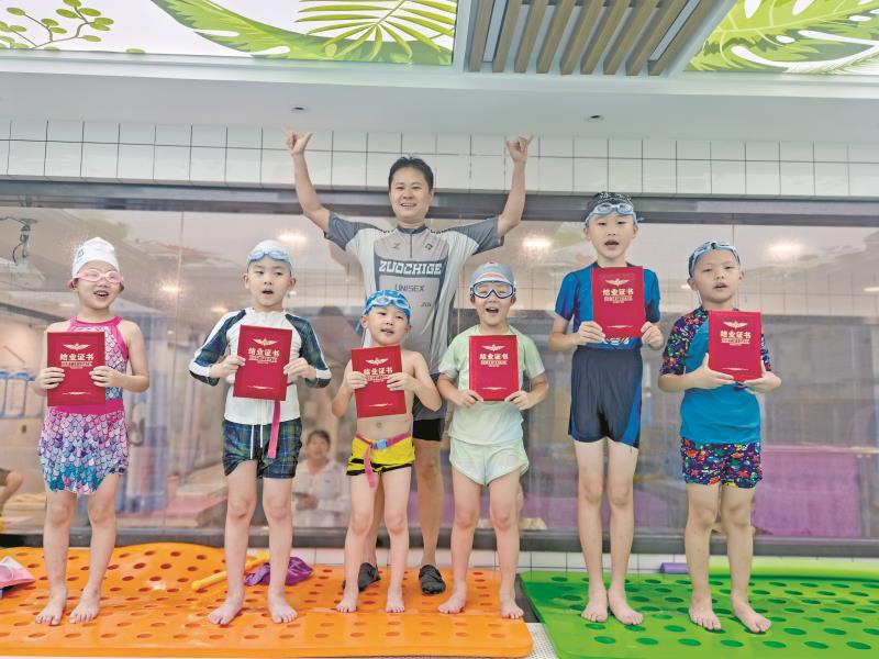 刚刚学会蛙泳姿势的小朋友党唯畅骄傲地说:“我不怕水了!明年我要学更多的泳姿!”她的家长党先生欣慰地说:“学游泳不只是学技能,我明显感觉孩子变得更勇敢、更自信了,这种克服恐惧后的成就感,是别的活动很难带来的。”